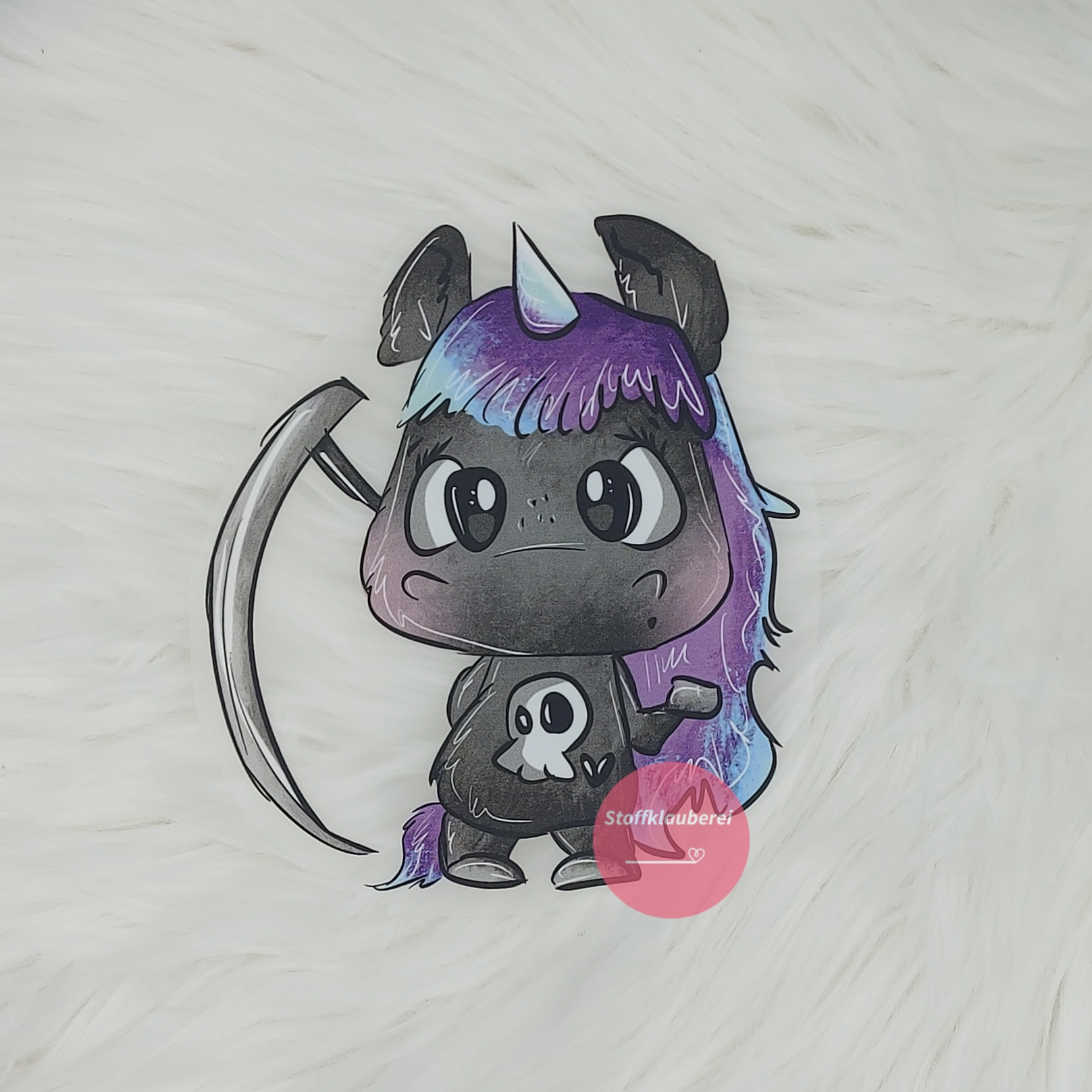 "Einhorn mit Sense" Bügelbild groß (ca. 14cm X 12cm)