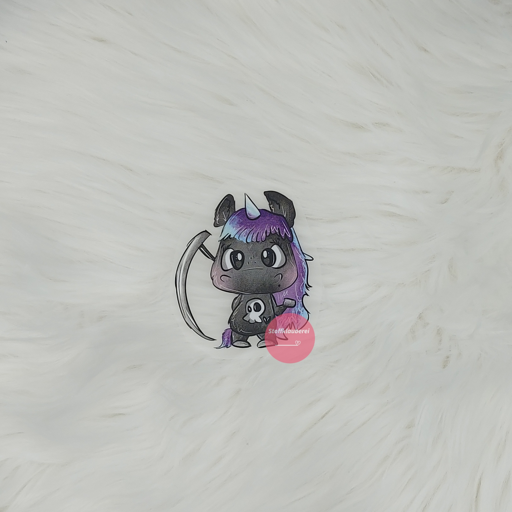 "Einhorn mit Sense" Bügelbild klein (ca. 7cm X 5,5cm)