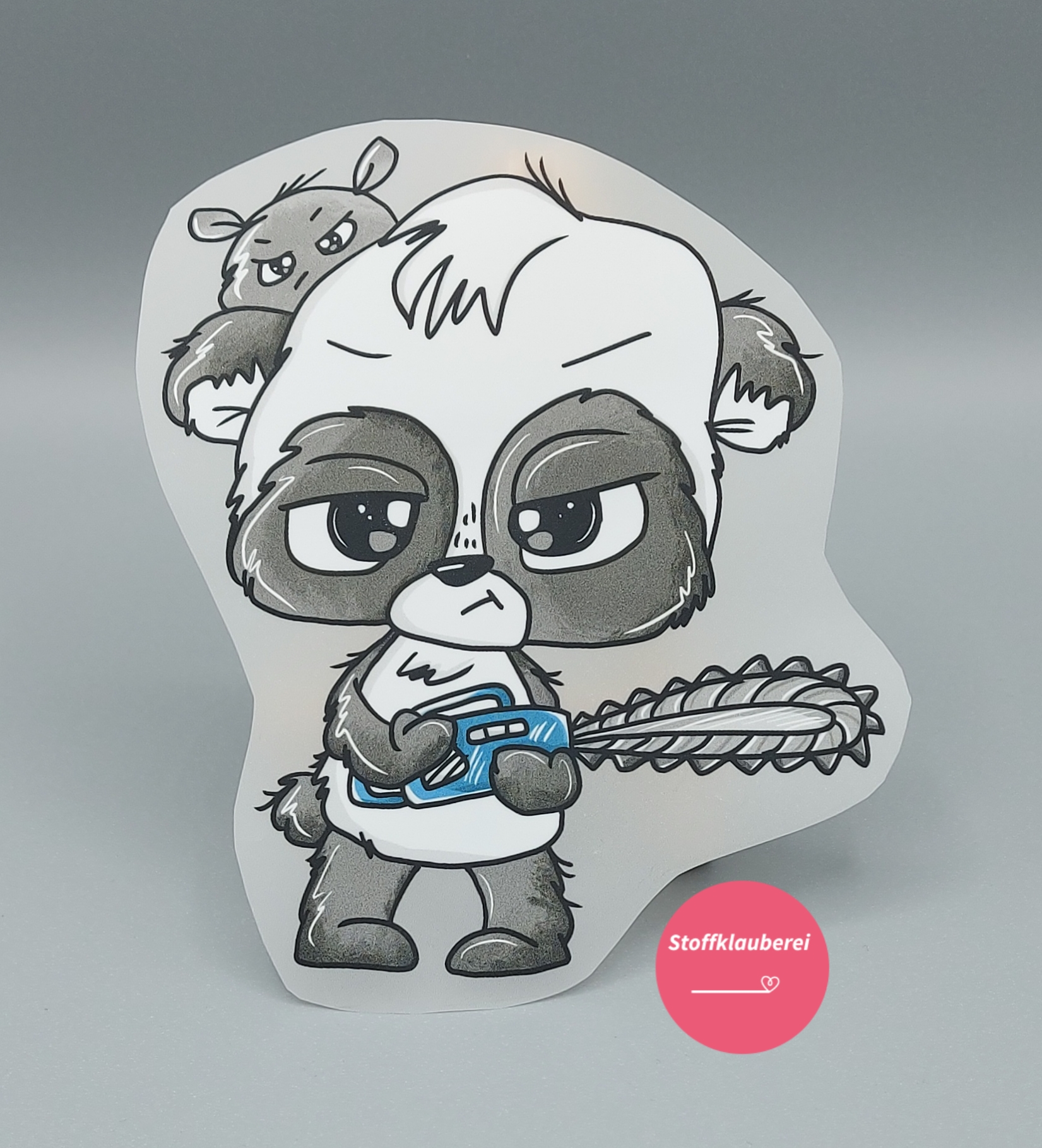 "Kettensägen Panda petrol" Bügelbild groß (ca. 15,5cm X 13cm)
