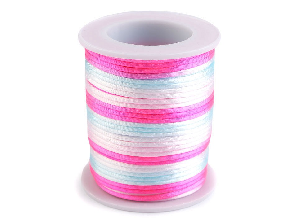 Satinschnur  Ø2mm  Regenbogen rosa - weiß