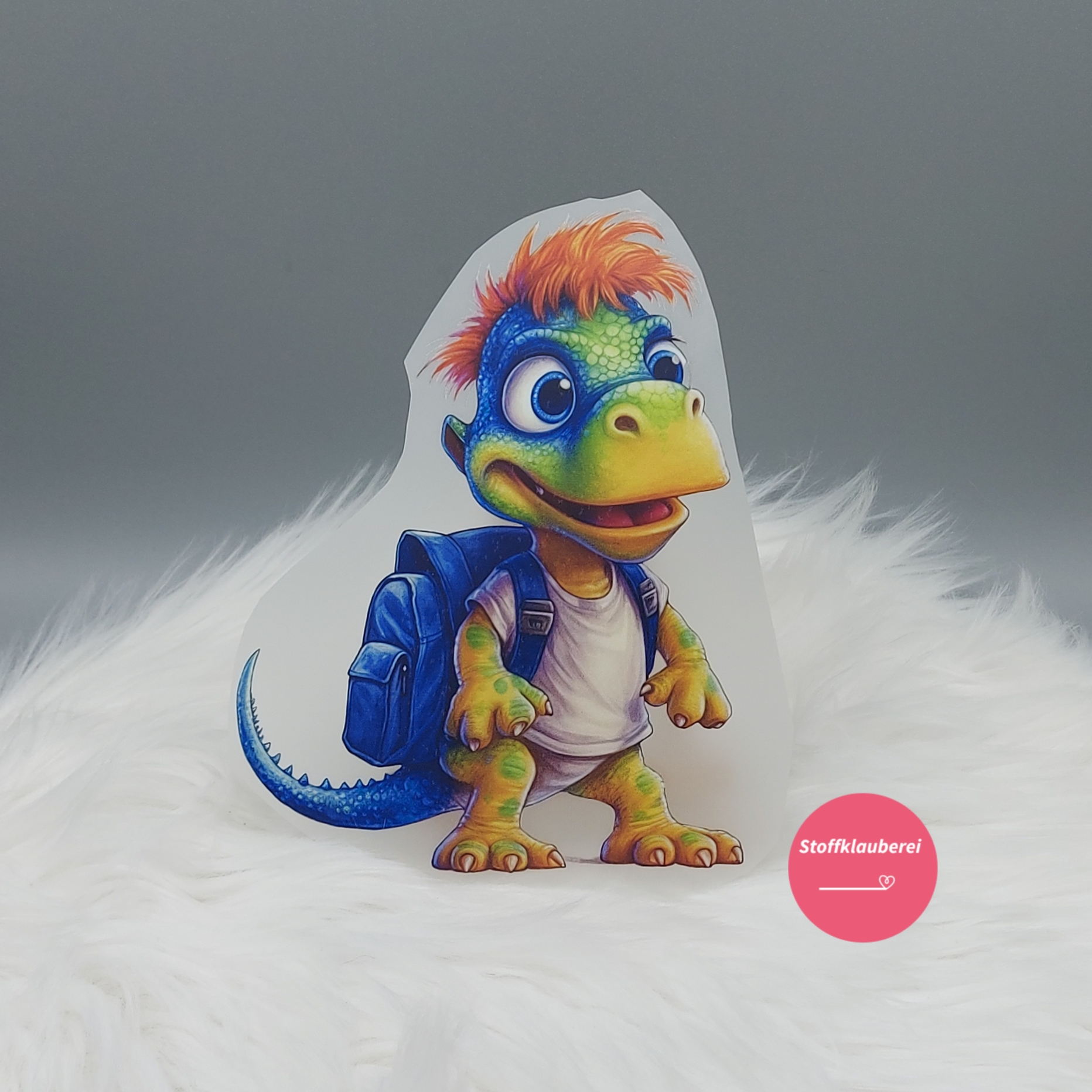 "Schuldino" 8 Bügelbild groß (ca. 16cm X 13cm) mit kleinen Fehlern